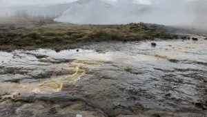 Freaking cold at the geyser. +1 and 39km wind. We parked at the end of the lot and made sandwiches for lunch. Good bread, good sandwiches. The we kitted up and went to see the geyser field. Not bad, not that big, but impressive.