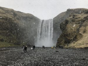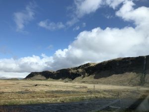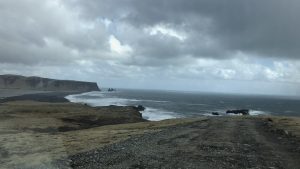 On toward Reynisfjara, a black volcanic sand beach with unique rock formations and overall moody atmosphere. Yeah right a lot of tourists and a lot of wind. We bundled up again and off toward the black sand beach and off toward the basalt columns that looks similar to the columns that are in northern Ireland and western Scotland.