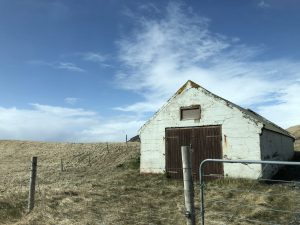 Off toward Dyrholaey – a 120 meter high Cliff jetting out into the sea. There was a lighthouse up there. Good thing they had chain fence that we could hang onto while we tried to walk out to the lighthouse. The wind had to be at least 60 clicks up here because you could hardly stand up straight. If you were just standing there it could blow you over. One of us was blown over but it wasn’t me. From this vantage point you could see the Sea stocks that were down the beach a bit and the long beach in the other direction. It would’ve been neat to be up there if it wasn’t for the darn wind and a little snow that we got there too.