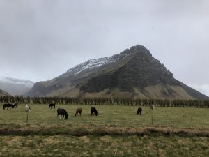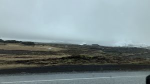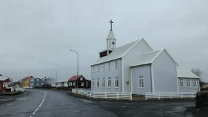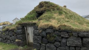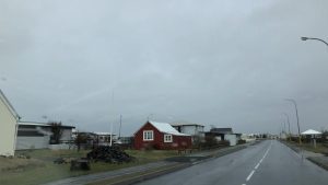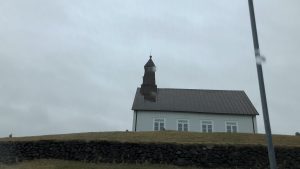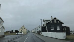 Off we went through the wind and the rain. Not much traffic. Stopped at Stokkseyri a small fishing village where we saw an old fishing hut. It was covered in sod. From there we stopped at Eyrarbakki. We drove out onto the old wharf and took some photos. Lots of d well preserved buildings- reminded me of the east coast.