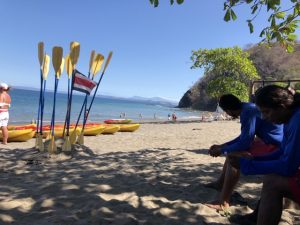 We caught an early water taxi back to the hotel. Racing along the sand so we didn’t burn our feet to get into the boat. Along the way we saw a school of yellow fin tuna feasting on sardines. These tuna weren’t that big, maybe a foot or a foot and a half long. Once back at the hotel we got changed into our suits and decided to go for lunch. More fresh pico de gallo and guacamole and chips. Really big lunch. Oh and there was flan for dessert. Over to the pool we went, looking for some lounges in the shade. We found a couple by Diego and Juanita (Derrick and Joan from Vancouver). We told them about our Nicaragua trip. Then into the pool to get cooled off and listen to some drunk guy yell at a bunch of other drunk guys that were 5 feet away from him. I guess that’s what happens when you have an all inclusive and all the booze you can drink.