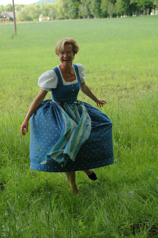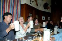 The food is good, and beer comes in liter steins – yahoo! After supper is the entertainment. Barbara gets up and gets taught