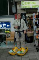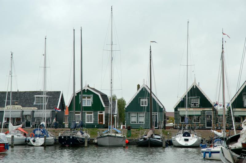It started to rain in Volendam, dam. But we wandered about grumbling the whole time.