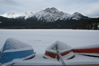 Driving toward Jasper Park Lodge