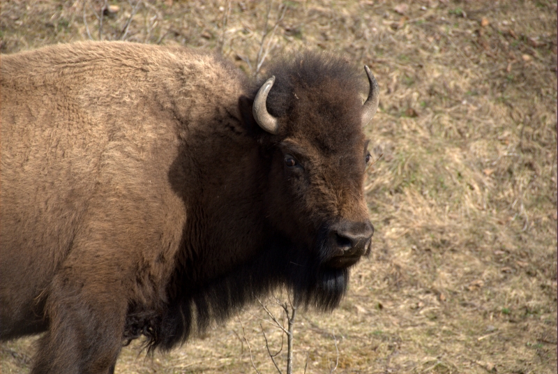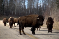On the way back we went through Elk Island Park. There was fresh poop on the road, and sure enough around a corner or two, there was a herd of bison on the road, and not it too big a hurry to get off it either. And me wearing a red shirt.